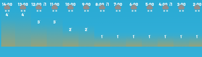 בין השעות 8 בערב ל 2 לפנות בוקר צפוי לרדת בירושלים בין 15-20 מ״מ של גשם, ובתרגום לשלג זה בערך 15 ס״מ של שלג.