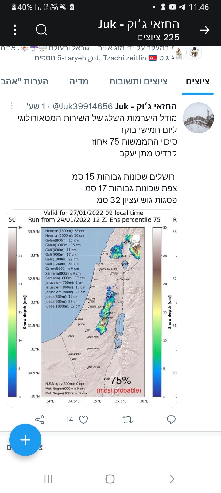 הצפי לשלג החל משעה 17:00