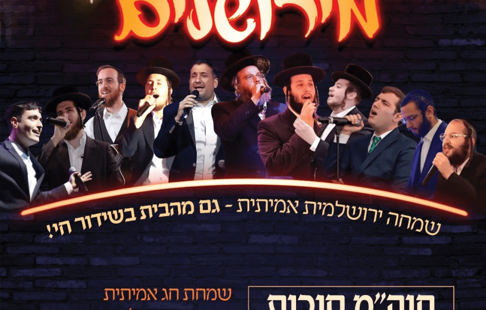 האירועים המוזיקאלים יועברו בשידור חי החל מהשעה 10:30 בבוקר באתרי האינטרנט ובערוצי הרדיו, ובקו התוכן של מופעי חול המועד, והחל מהשעה 21:00 יתקיימו מעמדי שמחת בית השואבה בהשתתפות גדולי הזמר החסידי על רקע חומות העיר העתיקה.