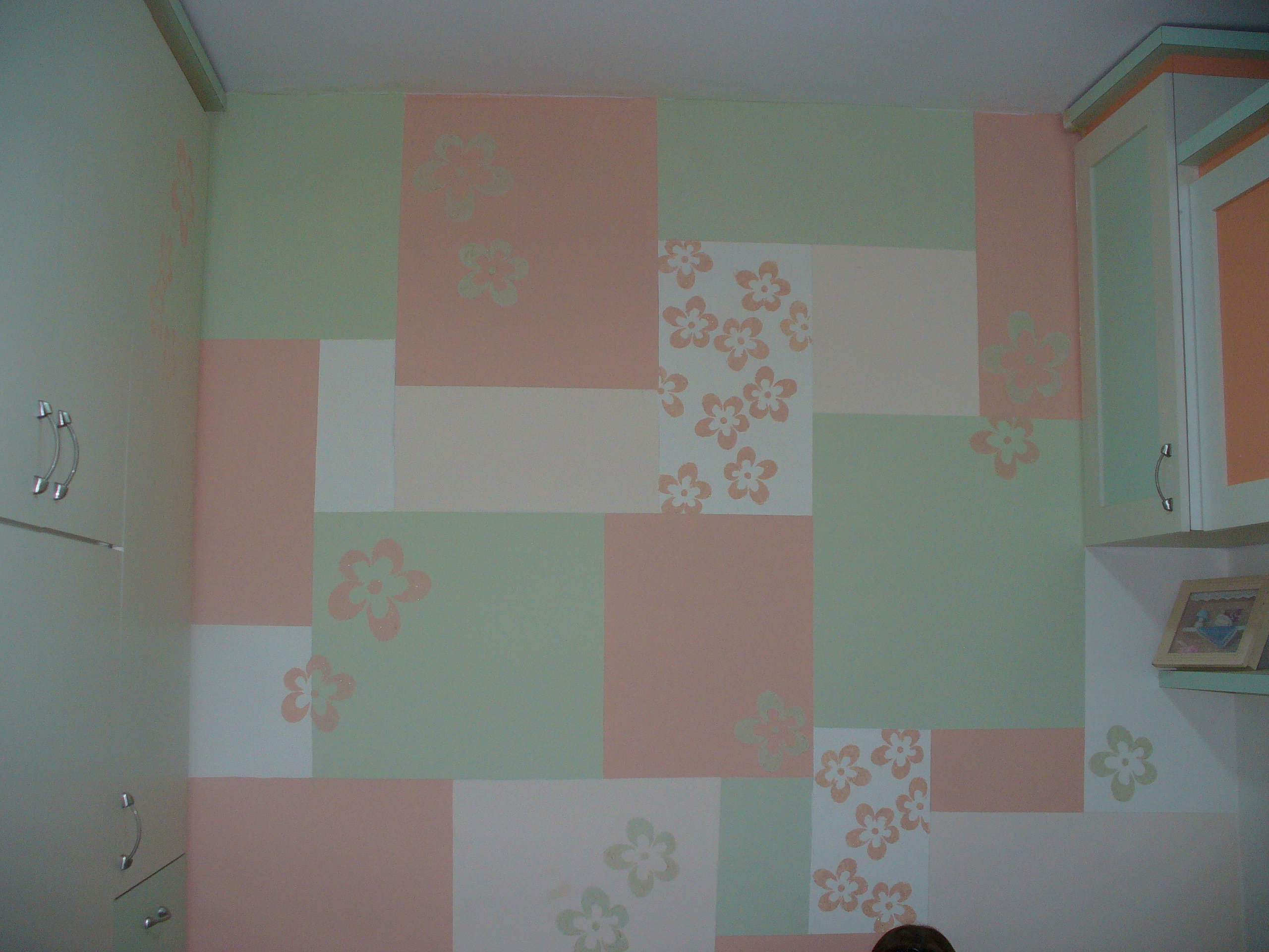 אני צבעתי חצי קיר ירוק ואז פס לבן ומעליו פס ירוק ומעל בכל השטח הלבן מדבקות קיר ירוק מפינתי