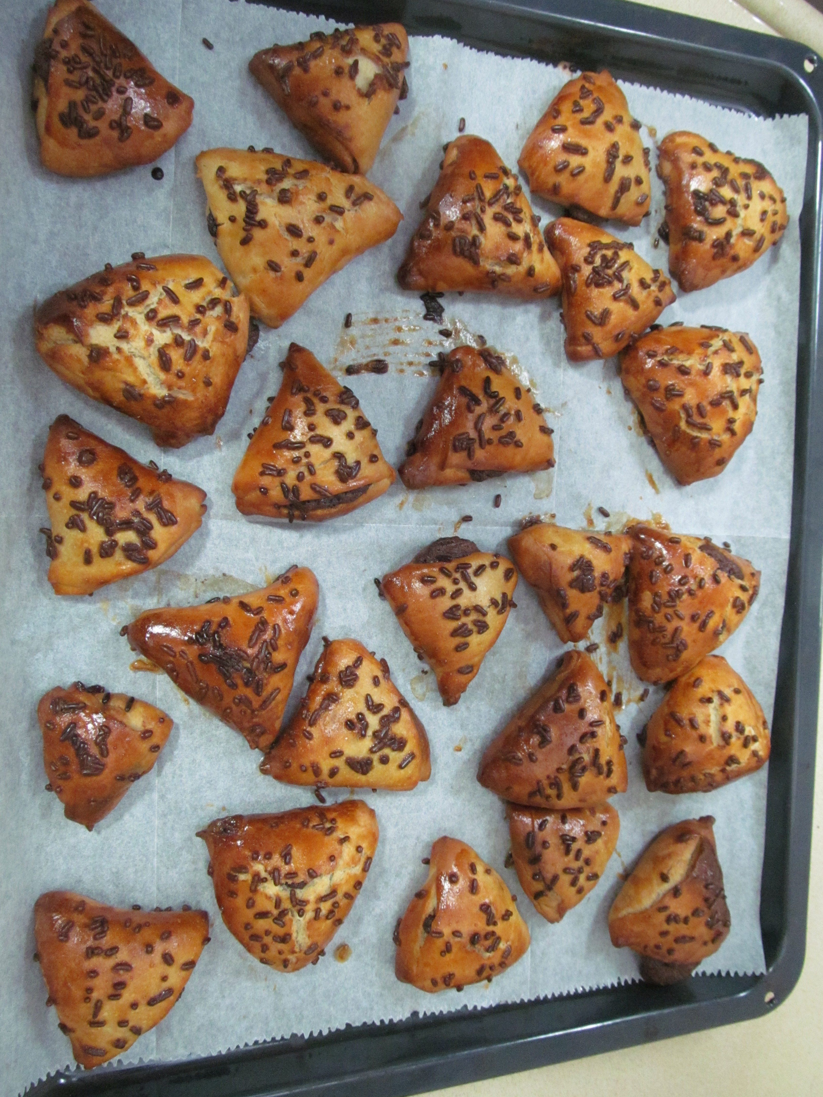 עשיתי חצי כמות משולשי שוקולד- במילוי ממרח פסק זמן חלבי