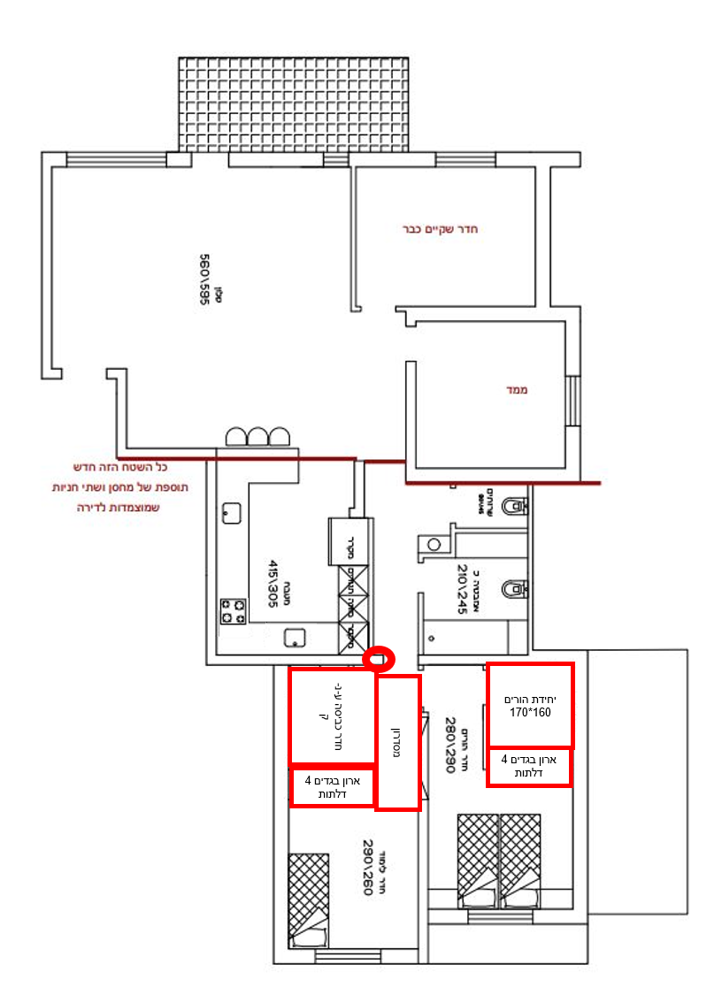 הקיר שצמוד למקרר זה עמודים לכן א"א להזיז כנ"ל לגבי הבליטה שהיקפת בעיגול.