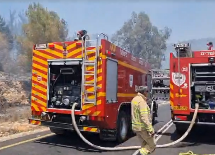 כבישים נחסמו: שלושים צוותי כיבוי פועלים לבלימת שריפה בהרי ירושלים​