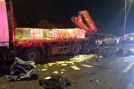 שרכבו נבלם צמוד מאוד למקום עצירת המשאית והאטובוס