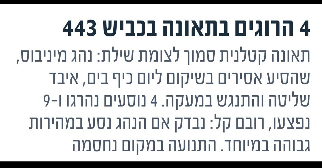 בקשת תפילה תאונה קשה מאוד בכביש 443