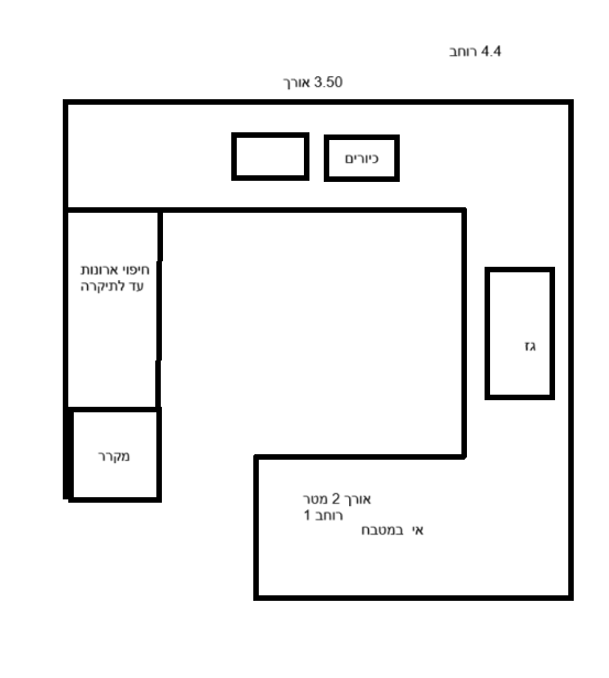 אני רוצה לעשות תאורת פסי לד במטבח בצורת ר להלן מצורף תמונה של המטבח (בערך)