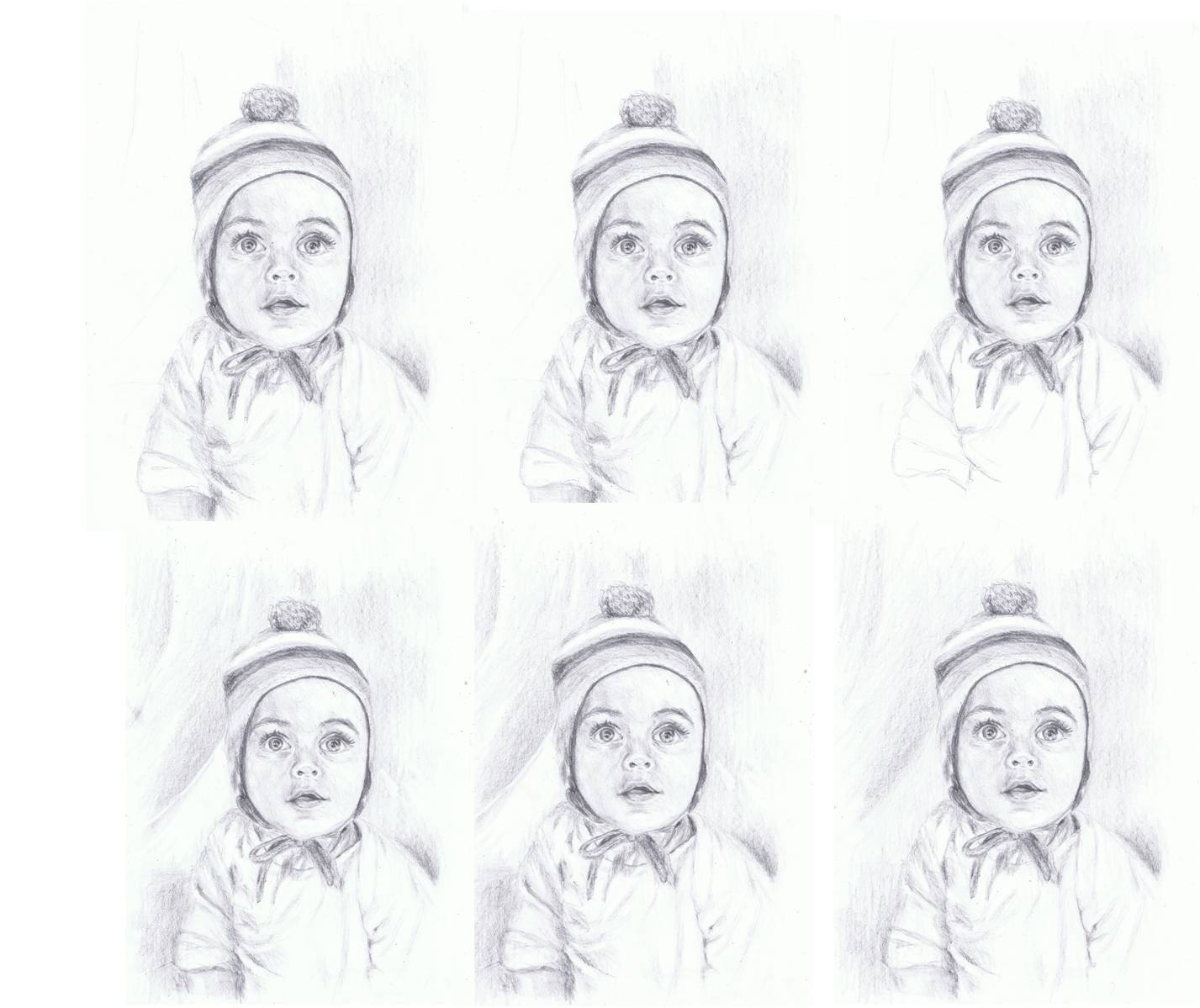 בכ"א אני בדר"כ מתחיל ציור שונה מהדוגמא הנוכחית אלא סקיצה גסה וישר להצללות, במקרה הזה עבדתי מאוד רך כדי לקבל משהו רך, ובנוסף שאני שמאלי ובכדי שהיד לא תסתיר את ההתקדמות אני מתחיל מלמעלה וימין..