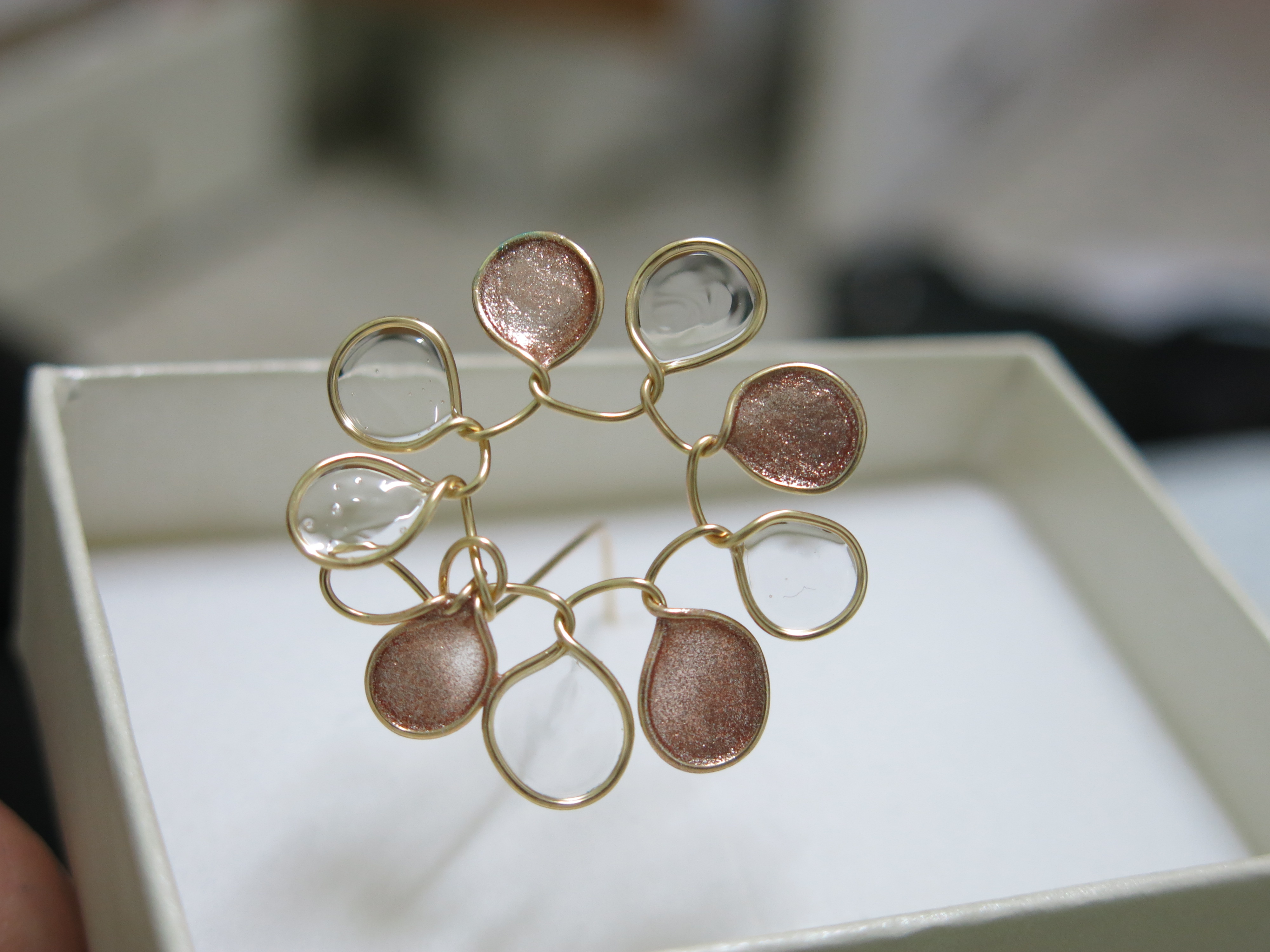 לוקחת צבע לק (כן, הזה של הציפורניים) מעמידה את המברשת שתהיה מאוזנת לתליון, ולאט מושכת את המברשת לאורך כל לולאה.