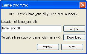 עושים ייצוא ואז הוא מבקש להוריד אוטומטית תוסף בשביל MP3 (רק בפעם הראשונה) ואז הוא רץ חלק...