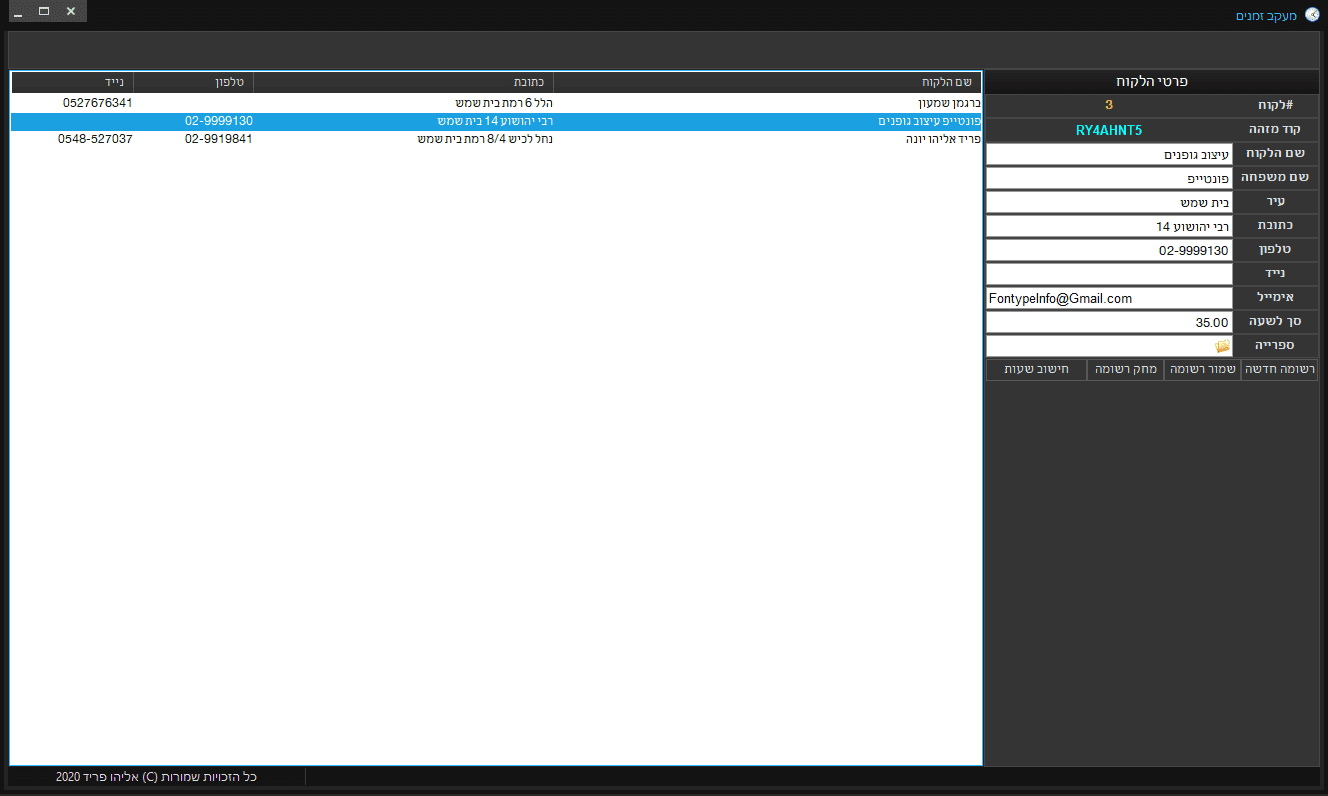 ב. יצירת רשומת לקוח: