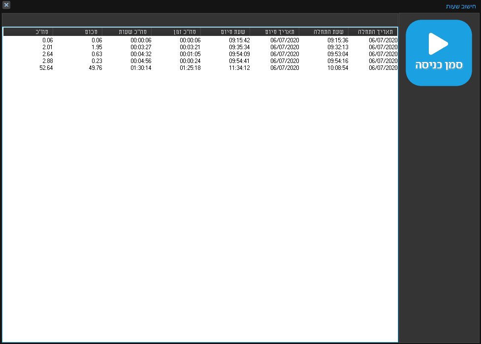 התוכנה תתחיל לספור את הזמן, אך ניתן לצאת לגמרי מהתוכנה. לאחר חזרה לתוכנה, התוכנה תמשיך לספור את הזמן שעבר מרגע הקלקת "סמן כניסה"