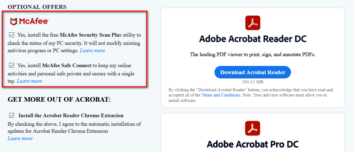 חשוב לשים לב שבדרך כלל כאשר מורידים את התוכנה מהאתר יש V שמסומן בדיפולט שמוריד ומתקין גם אנטי וירוס של מקאפי.