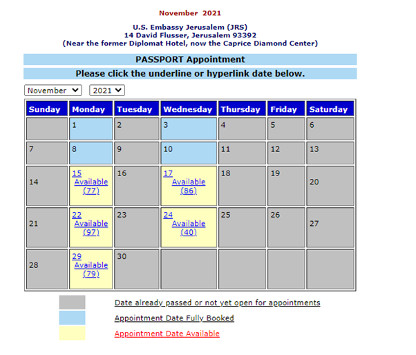 יש עכשיו הרבה תורים פנויים לחידוש דרכונים בשגרירות ארה"ב בירושלים בחודש נובמבר!!!