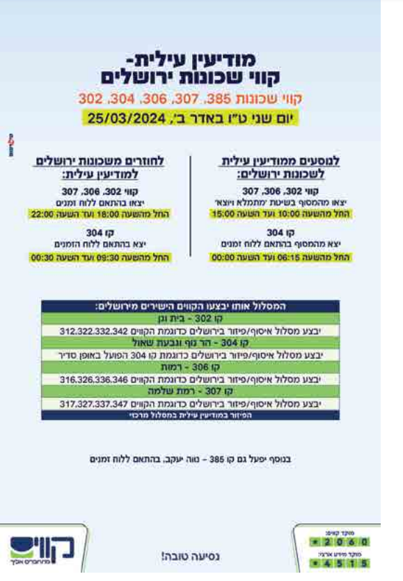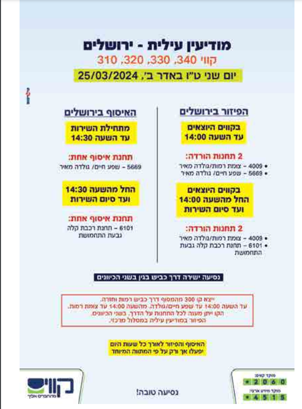 פורים תחבורה ציבורית מודיעין עילית לירושלים - פורים תשפד