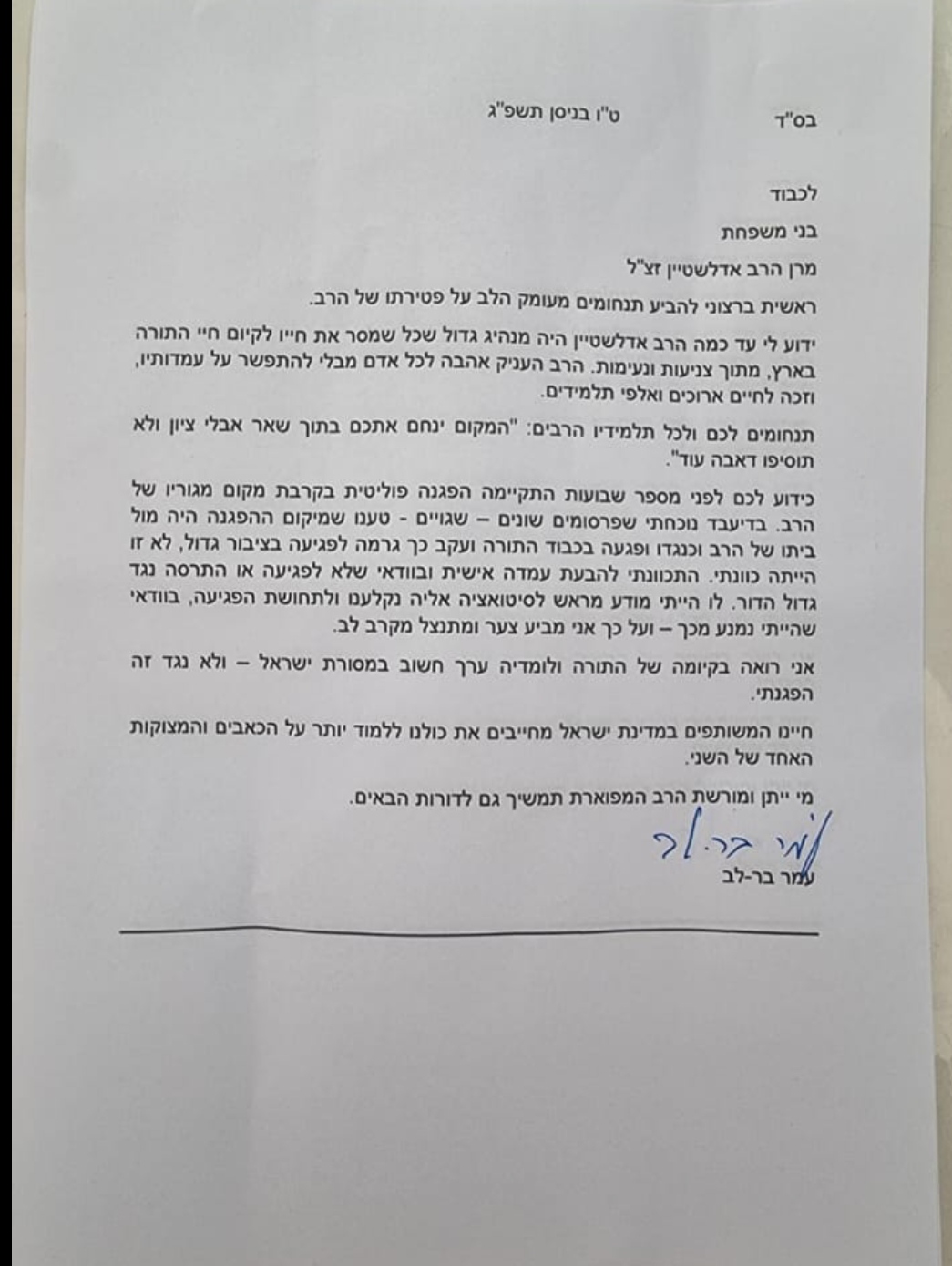 אדם שבקדנציה המהוללה שלו איחל החלמה לנפטרים והבטיח לשים את היד על המחבלים שנהרגו - וגם כשהוא כותב מכתב התנצלות - התאריך הוא חג ראשון של פסח....