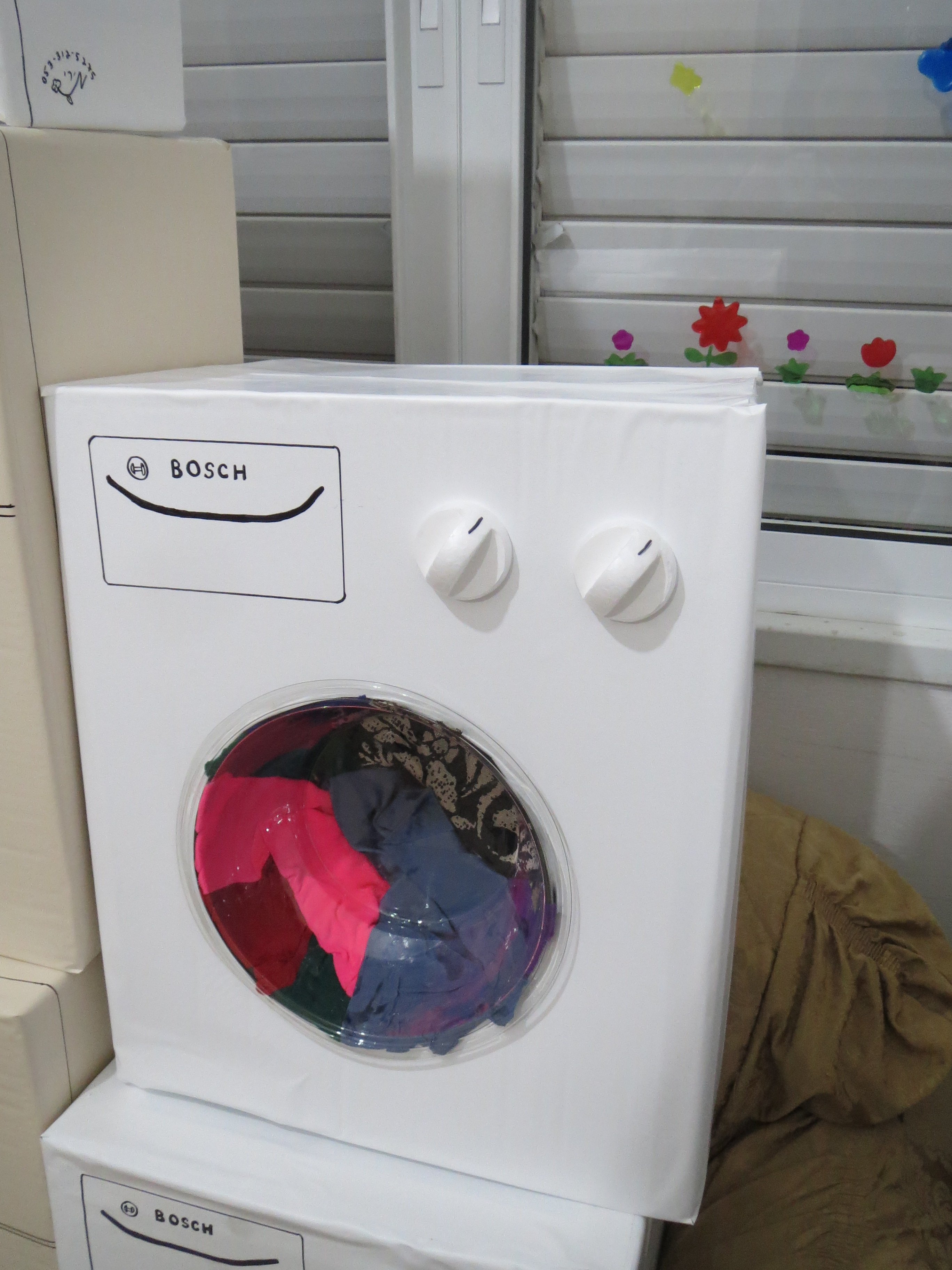 תוף מכונת הכביסה- צלחת עמוקה/קערה ח"פ שקופה, כשלצידה התחתון הדבקתי שאריות בדים...