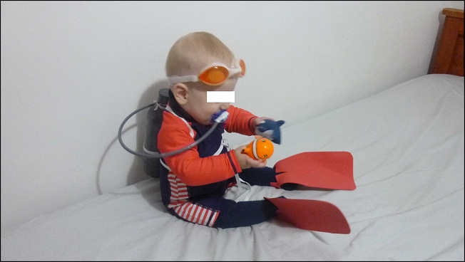 לקחתי גומי פשוט והקפתי את הראש של הילד חיברתי אותו כך שיצא מעגל מגומי באמצע מתחתי עוד רצועת גומי ליצירת שביל.