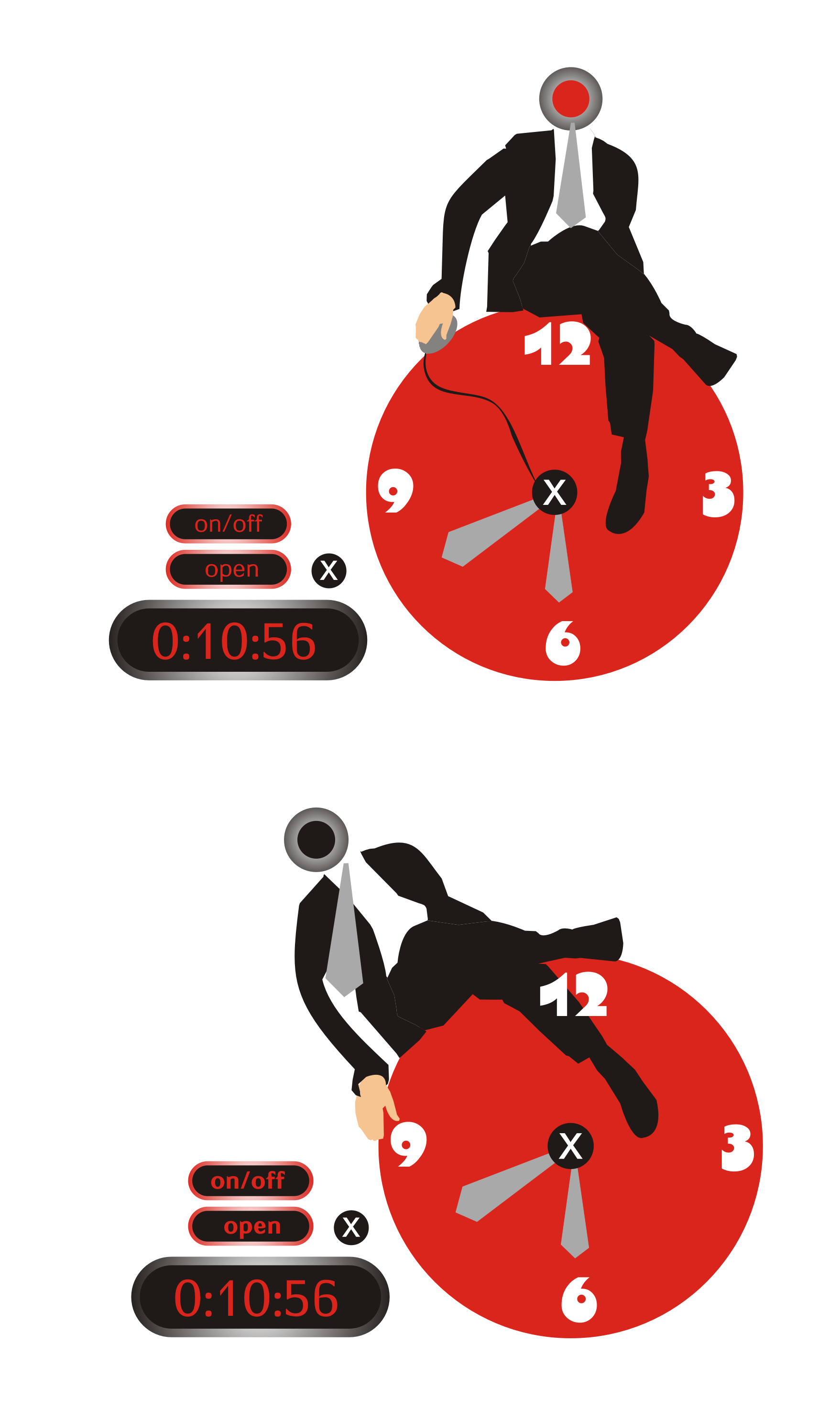 בעקרון התוכנית שלי היתה שהרגלים של הבן אדם יהיו המחוגים ותוך כדי סיבוב ישפיעו על השעה.. אבל זה לא הסתדר לי. כלומר לא במסגרת הזמן שהקצבתי לעצמי לפרגן בשביל העבודה הזו.