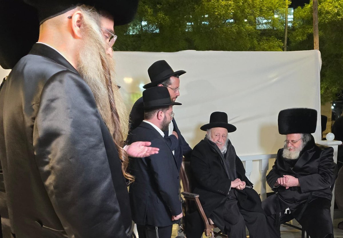 רבינו הגדול מרן ראש הישיבה שליט"א הגיע להשתתף בשמחת תלמידו האדמו"ר ממודז'יץ שחיתן את נכדו עם נכדת גאב"ד צאנז ירושלים