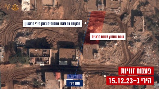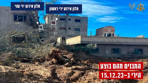 9. מסריקות שבוצעו במבנה, לאחר אירוע הירי בחטופים ב-15 בדצמבר 2023, אותרה מצלמה שהייתה על גבי הכלב שנהרג. הממצאים העלו כי החטופים שהו במבנה שבו פעל הכוח, וכי המחבלים שחוסלו היו אלו שהחזיקו בחטופים. בתיעוד שנמצא על הכלב החטופים לא נראים, אך קולם נשמע כשהם זועקים לעזרה. בסיום הקרב, ולאחר שחוסלו המחבלים שהחזיקו בחטופים, החטופים ככל הנראה יצאו מהמבנה במסע מילוט.
