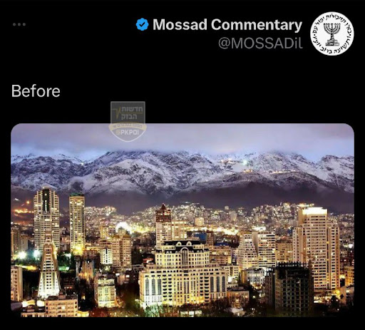 שפורסמה בעמוד פייק המדמה את העמוד ה-X הרישמי של המוסד תחת הכותרת ״לפני״ - ״ Before״