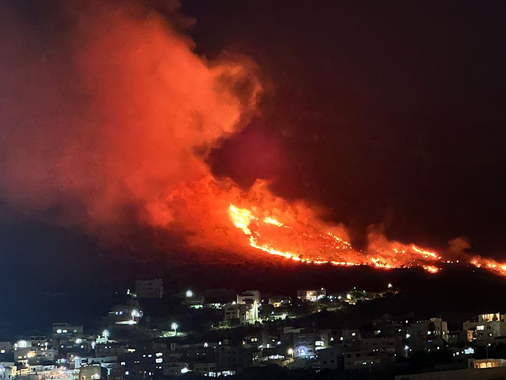 שריפת ענק מתפשטת בשעה האחרונה באזור המועצה המקומית נחף מצפון לכרמיאל, ככל הנראה כתוצאה מנפילת מיירטים בתגובה לשיגורים של חיזבאללה הערב