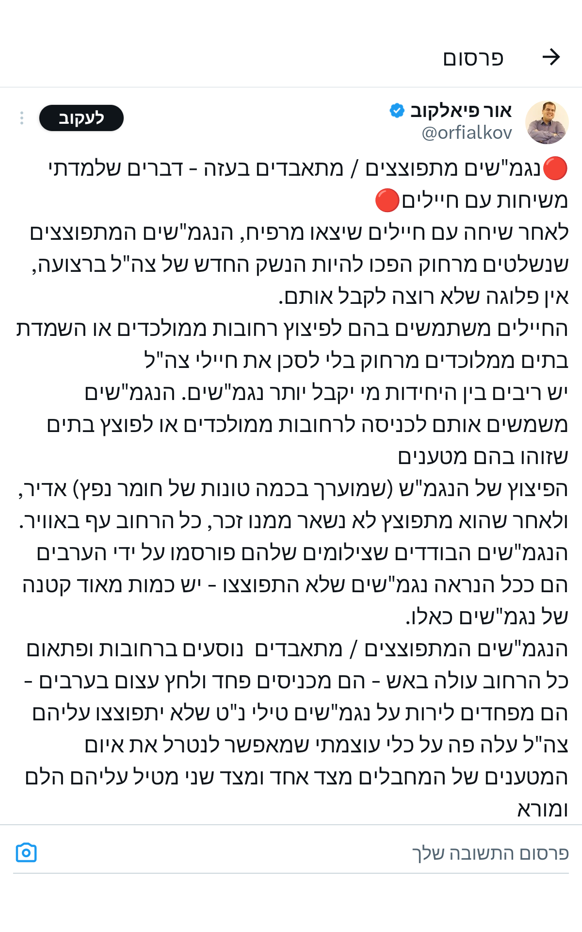 ולמה צה"ל פוחד יותר? כי שם שמיים נוכח הרבה יותר. כולנו רואים את זה בסרטוני הלוחמים, בתפילות, בשירים, בספרי התורה, בציציות, בשופרות. אבל שימו לב: את התיעודים המאוד מרגשים האלה לא מוציא דובר צה"ל. להפך, דובר צה"ל מנסה להסתיר את הרוח הגדולה של לוחמינו. לפני כמה חודשים הוא פרסם תמונה של לוחמים מאוגדה 98 בתום מבצע מוצלח בחאן יונס, תוך טשטוש הפאץ' הנפוץ בימים אלה בצה"ל עם המילה "משיח" שהיה על זרועו של אחד מהם.