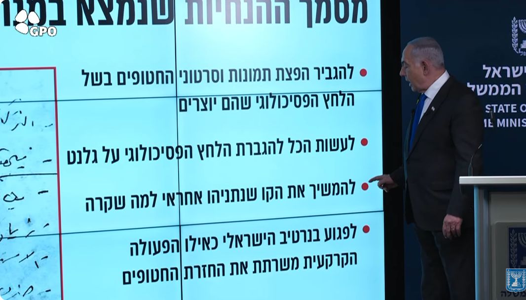 נתניהו מציג את מסמך ההנחיות של בכירי חמאס שנחשף במנהרות: