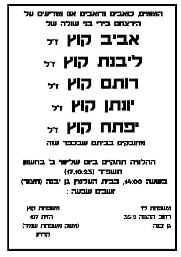"צריך גם לומר", הוא מדגיש, "שכמעט כל מי שהגיע מהחלק התחתון של הרחוב, משכונת התמר, נהרג בידי המחבלים ששלטו על השטח. שניים מההרוגים היו משה ואלעד אוחיון – חבר בקהילה שלנו ובנו, שהגיעו כדי להילחם במחבלים. הם נכנסו לתוך הרחוב בגבורה, והמחבלים קיבלו את פניהם ביריות. הם יצאו מהרכב שלהם וניסו להיכנס לאחד הבתים בכדי להמשיך להיאבק במחבלים, אבל אז נהרגו. הי"ד. היו גם שני אחים, חייל בסדיר וחייל במילואים בן 24, שיצאו ללא נשק. הם שמעו את היריות, ואמרו שייצאו לעזור במה שהם יכולים. שניהם נהרגו, לצערנו.