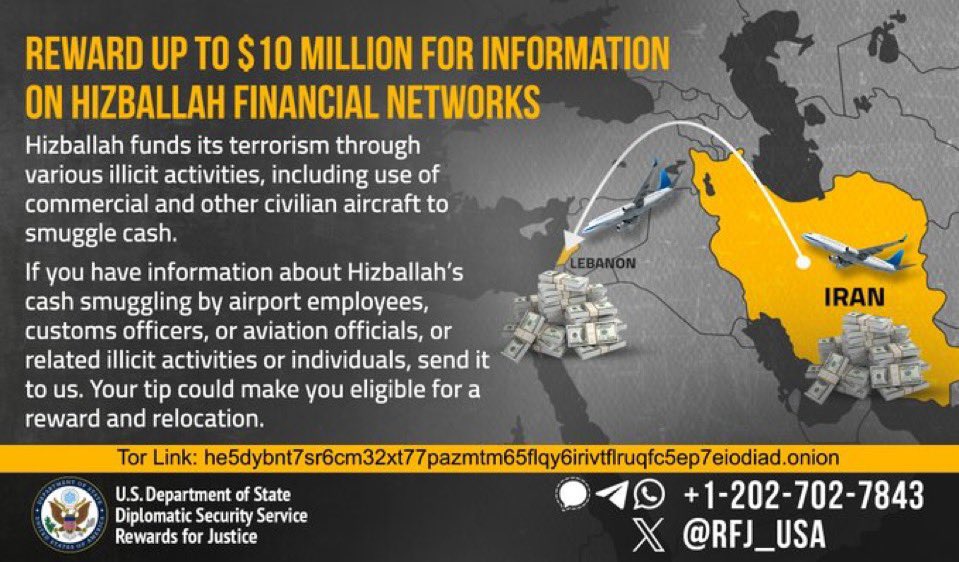 ארה"ב מציעה פרס של עד 15 מיליון דולר למי שיביא מידע על רשתות הכספים של חיזבאללה ושל החות'ים