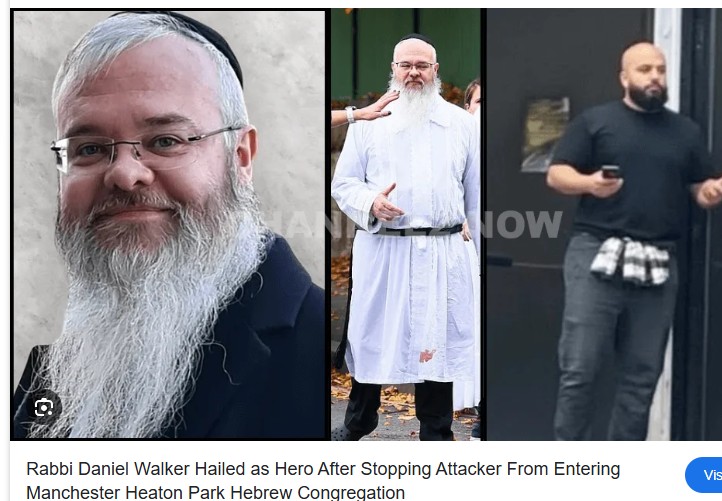 העיתון הבריטי "דיילי מייל" מדווח כי הרב דניאל ווקר, מנהיג קהילת היטון פארק במנצ'סטר, הציל עשרות מתפללים כאשר חסם בגופו את דלתות בית הכנסת בשעה שמחבל ניסה להיכנס פנימה לאחר שדרס ודקר מתפללים מחוץ למבנה.