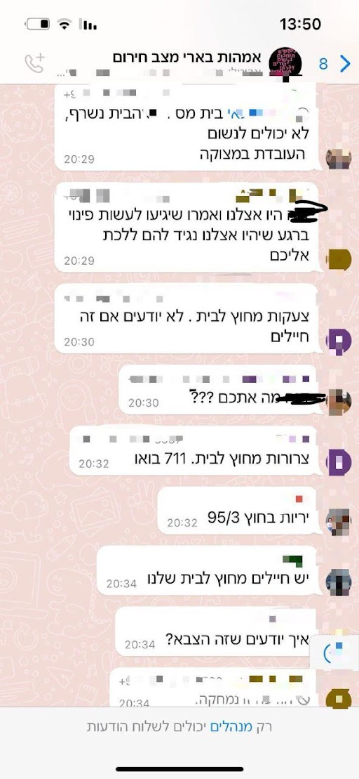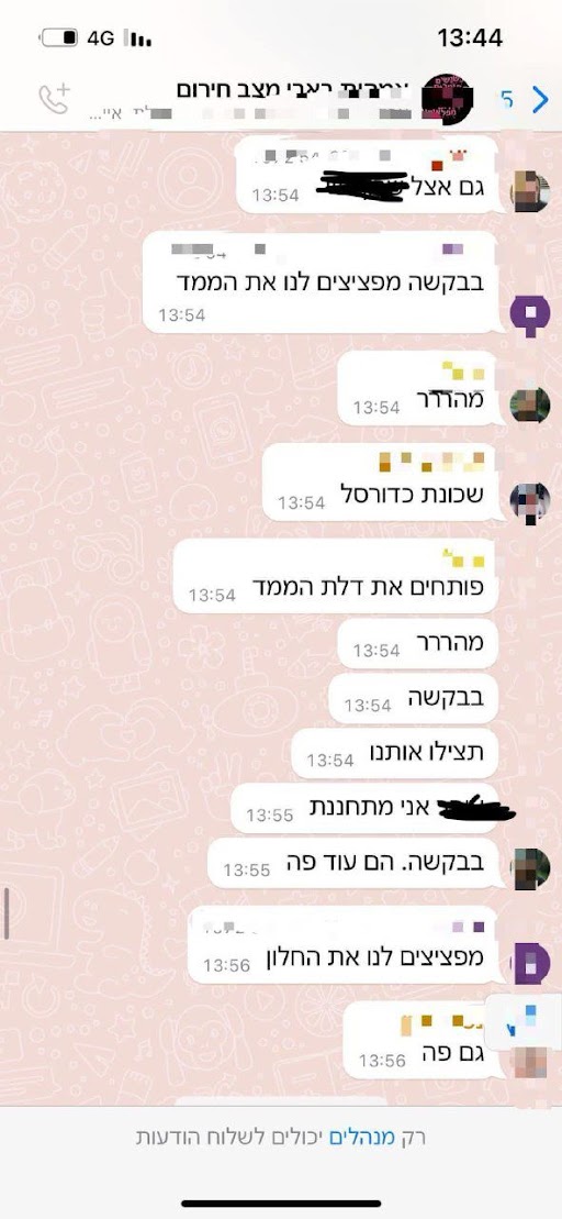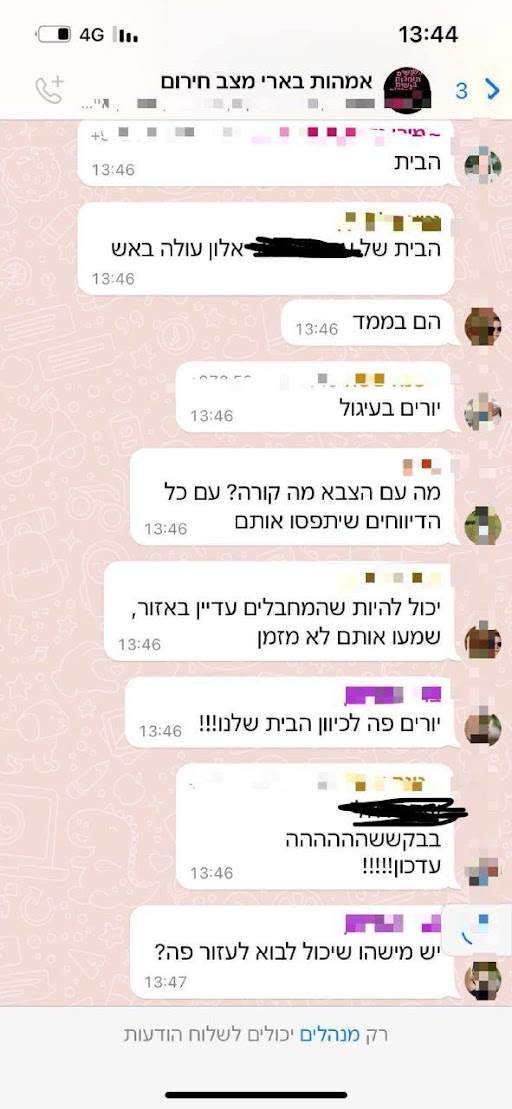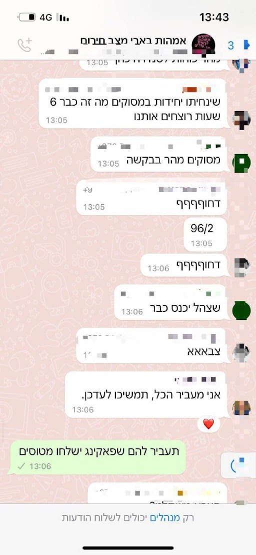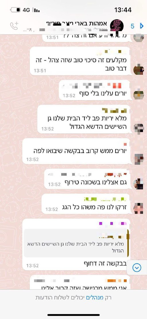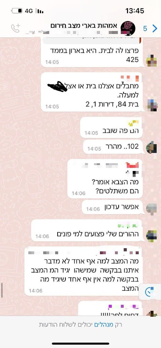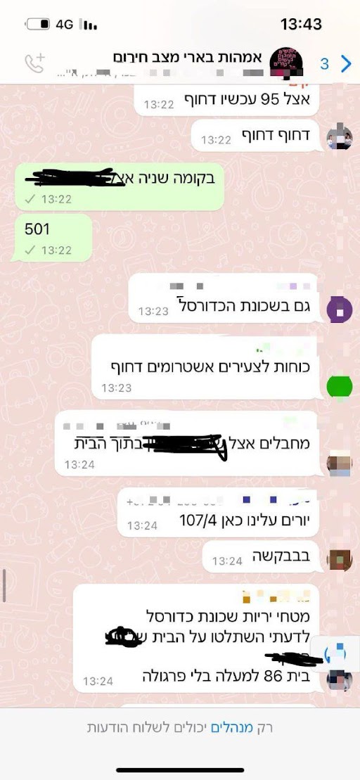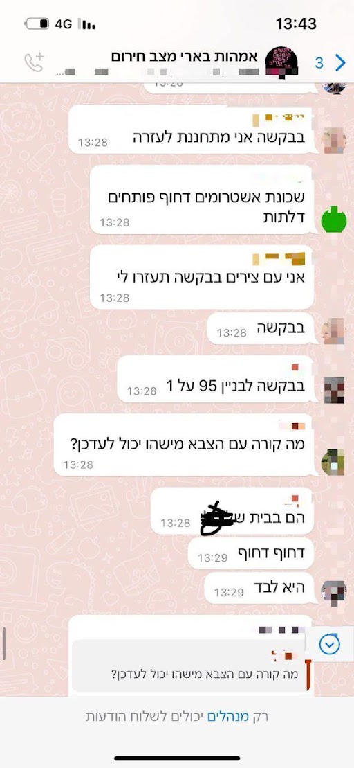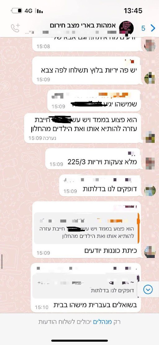 התכתבות מתוך קבוצת האמהות של בארי מיום שבת 7.10.23 -