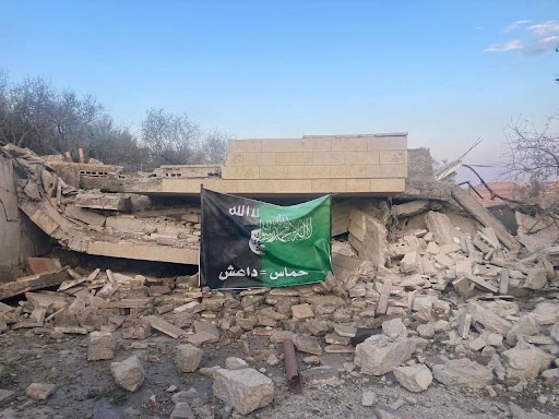 כוחותינו השאירו שלט בהריסות ביתו חמאס = דאעש.