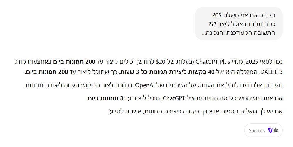 שאלה תכל'ס כמה תמונות אפשר ליצור בChatGPT Plus ???