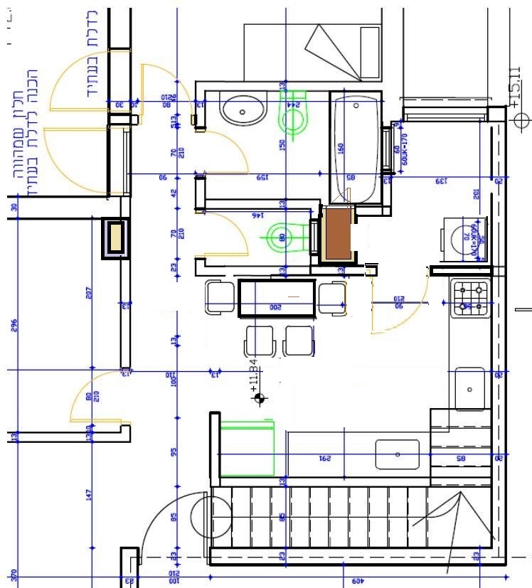 הייתי מציע לשנות מיקום לקיר נטילת ידיים ולהעיף אותו --הוא סתם סוגר את המטבח -הרבה יותר מוצלח בלי הקיר הזה