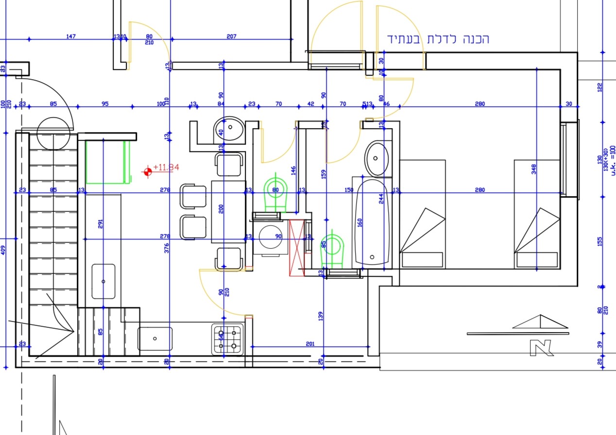 אם כן אז אולי תקצרו את השירותים ותרחיבו על חשבון חדר האמבטיה בחלק שמאחורי הדלת