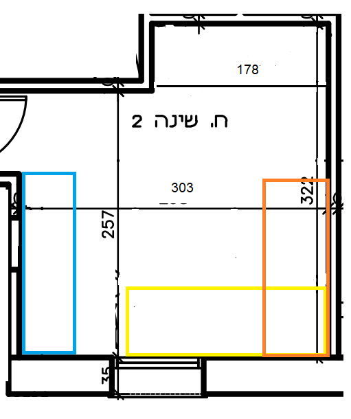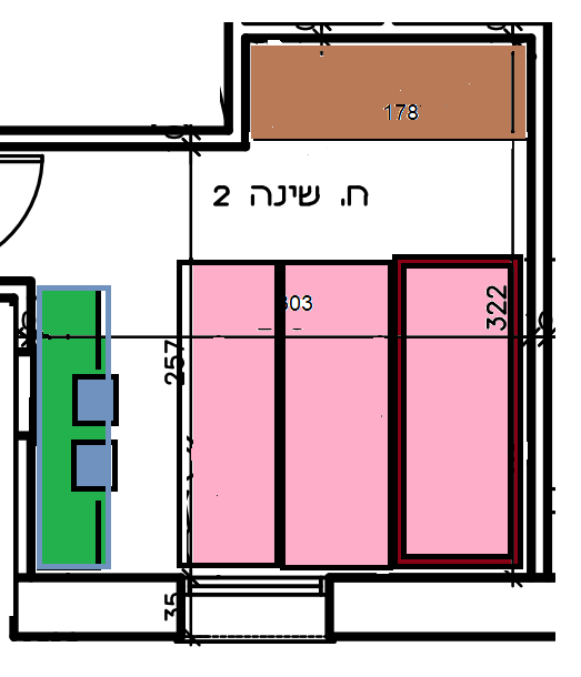 האמת, זה לא מידות מדוייקות, מסתבר שהמיטה תהיה מידי קרובה לשולחן ולא יוכלו לשבת שם, אז יכולה לומר פיתרון יפה שאני עשיתי במצב שזה ממש צמוד, פה יש מצב שיהיה מספיק נוח גם אם זה ישאר שולחן ובחלק הצמוד למיטה לא יהיה גישה נוח לכסא רגיל, צריך לבדוק מידות מדוייקות