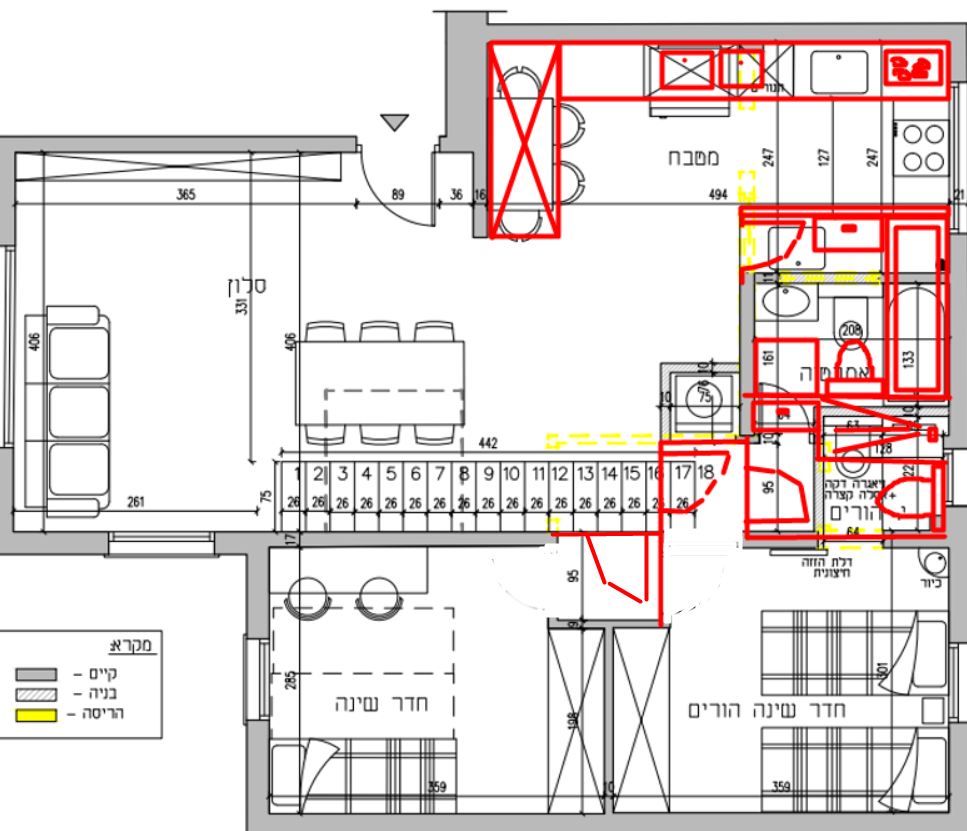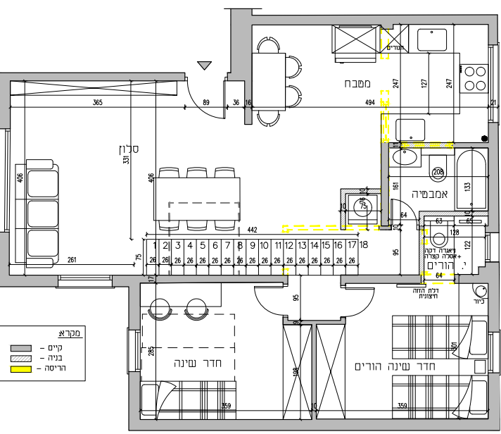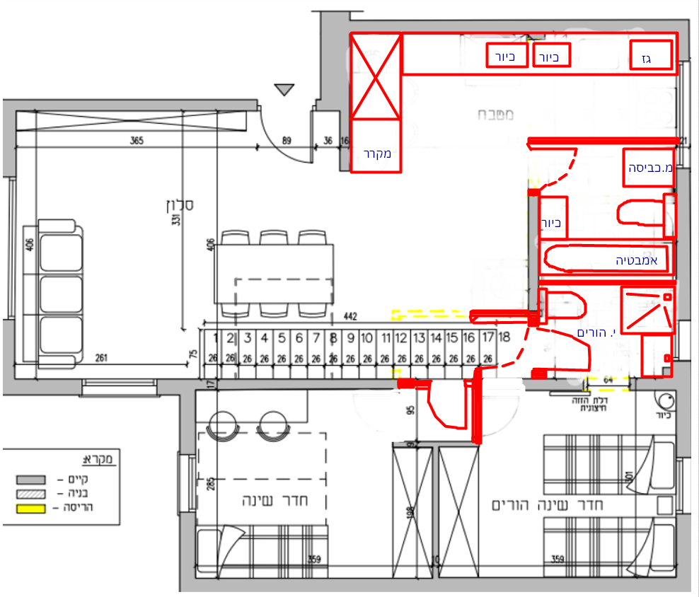 הערה: כדי לוודא היתכנות ריאלית להצעות העולות כאן ,יש לשרטט לפי קנה מידה. שרטוט עם לורדים על גבי התוכנית זה נחמד ,אבל אחרי כן יש לשרטט בצורה מקצועית ומדויקת. לפעמים מגלים שלא ממש ניתן לביצוע...