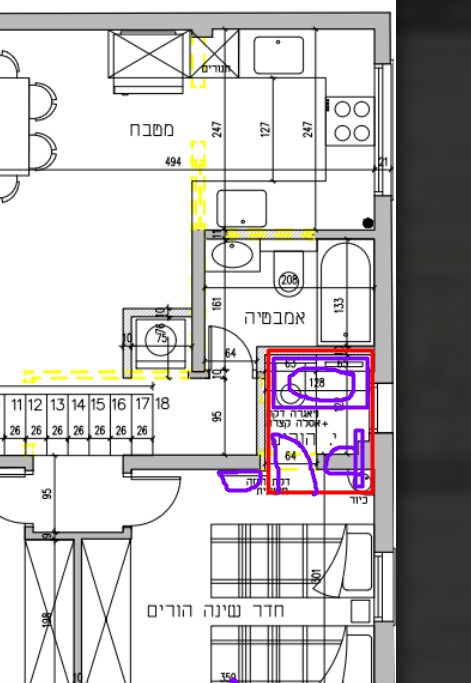 אך כן יש אפשרות לצאת בקיר האחורי לכיון המטבח - אם משאירים 40 ס"מ מכל צד, כמובן שזה על חשבון המטבח אז בזהירות