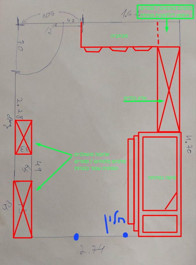 שהמיטות סגורות יהיה גישה מלאה ושהם יהיו פתוחות יוכלו לפחות כסא אחד