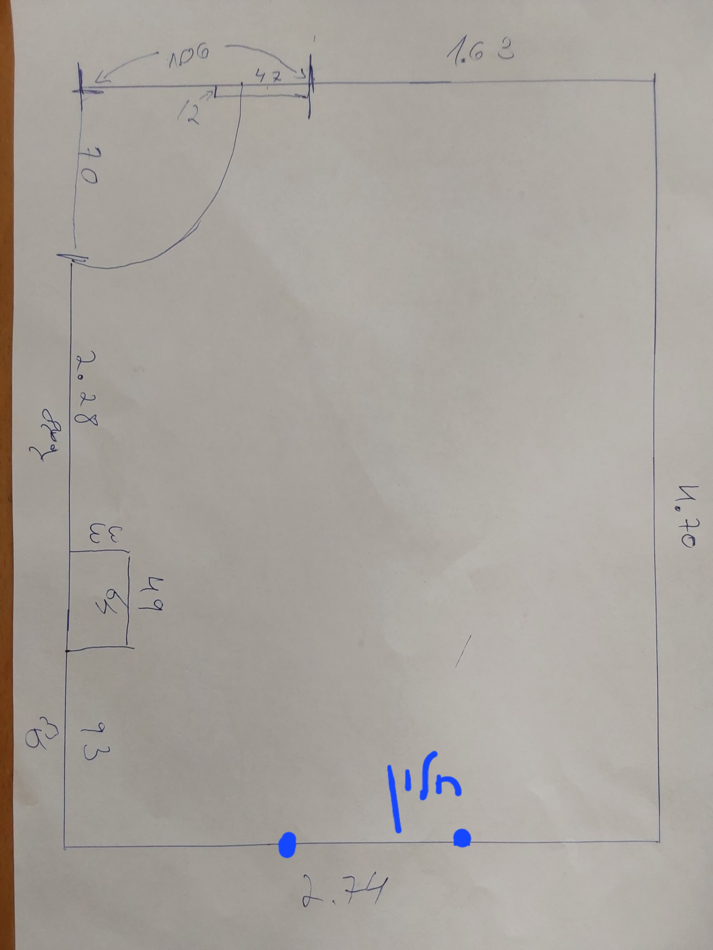 יש לך 230 ס"מ מהקיר עד העמוד