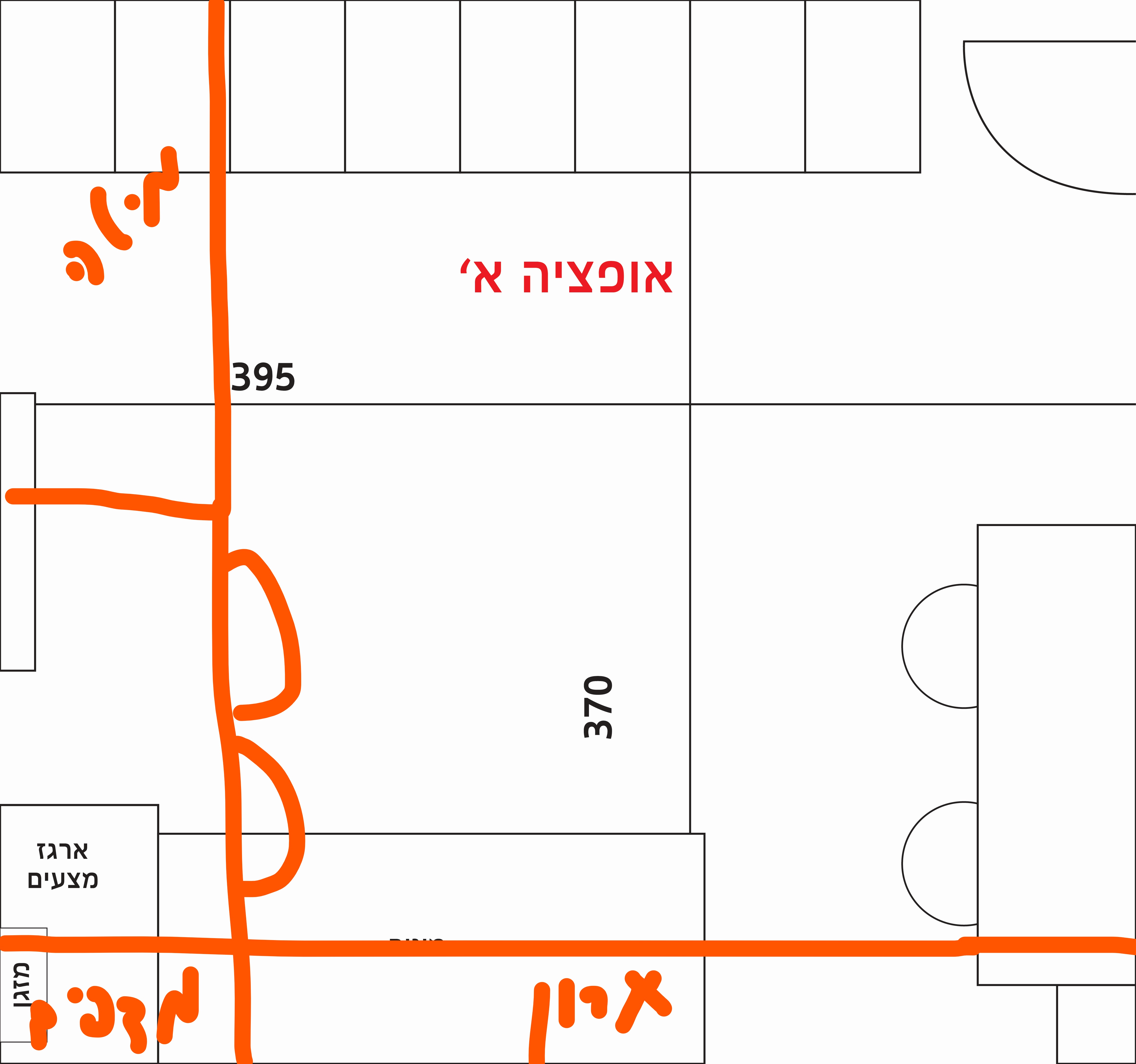 אופציה ג', ואת השולחן להעביר לקיר ממול, לא נח לשבת עם גב לדלת אלא עדיף שיהיה קשר עין כשמישהו נכנס. ואז השולחן הוא המשך של ארגז המצעים, ויש קיר שלם עבור הארון.