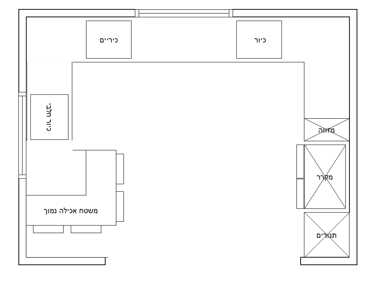 אנחנו חושבים לקצר ולהנמיך את החלון (אין לנו מושג מה העלות של זה, אבל זה מאפשר לי לנצל את הצד השמאלי...) ואז נוכל להעמיד כיור חלבי בחלון ולשים קלאפה מעל.