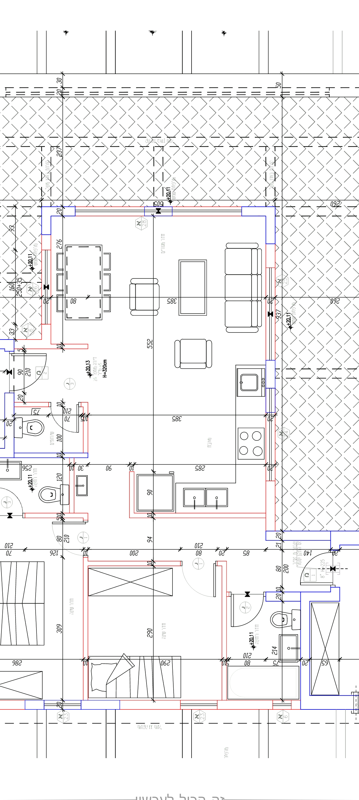 מידות המטבח צד מקרר 3.85 צד חלון 3.20 גובה תקרה 3.17