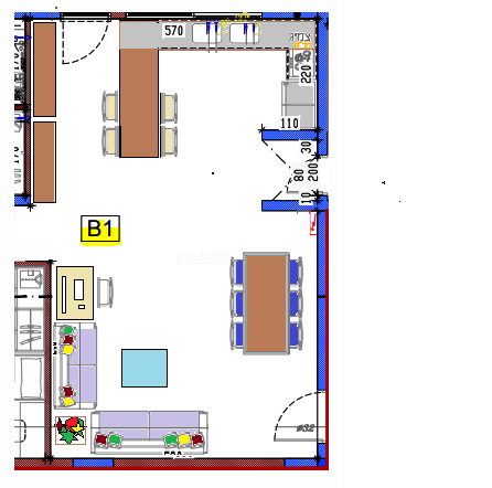 2- איפה דלת כניסה ראשית ? --הקירות בכחול בין המטבח לסלון ---זה נראה כמו כניסה לממד ?