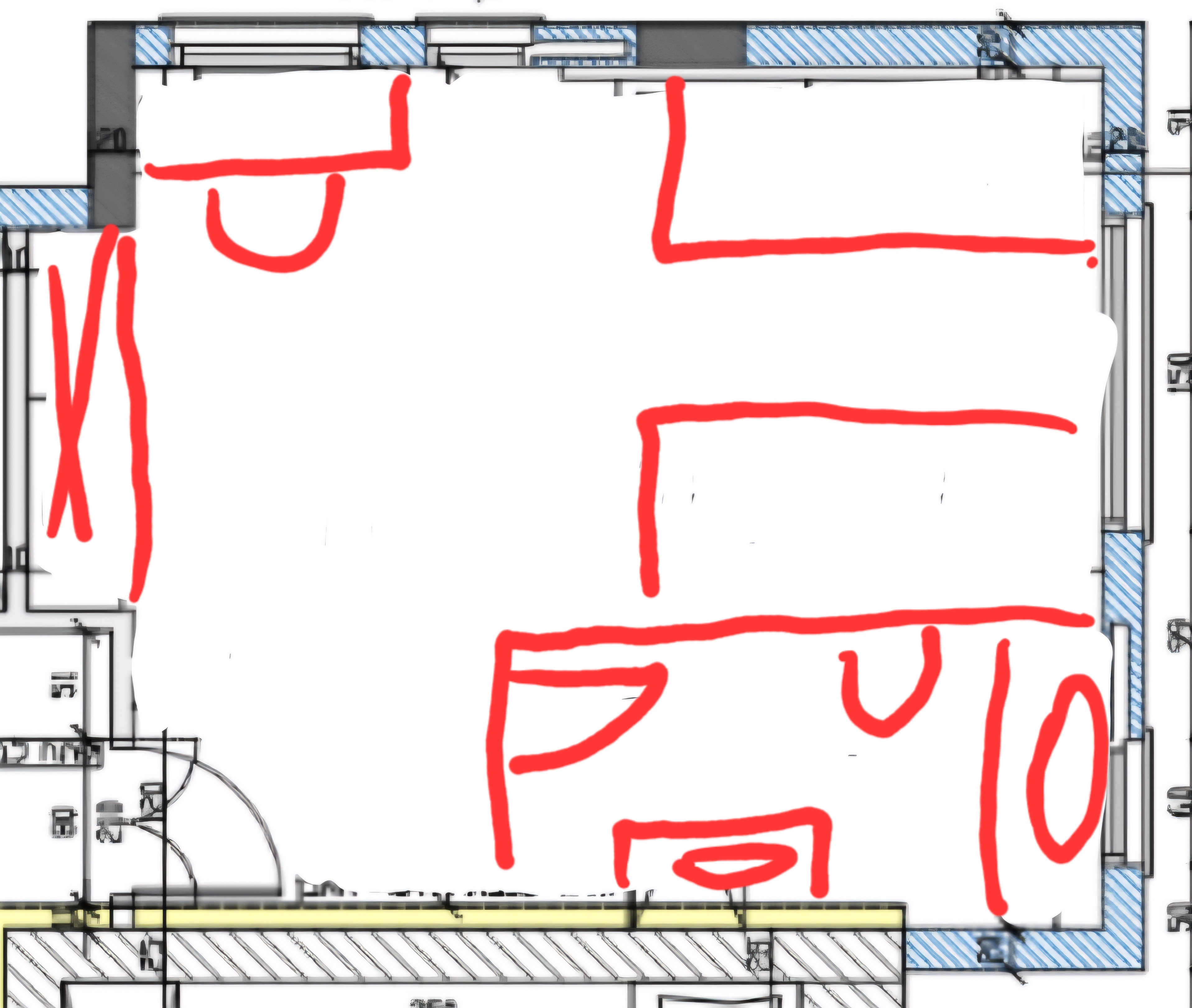 השטח שכתוב בעפרון חזית בנין - יוצאים רלסים שיכולים לצאת קצת (השכן כבר השקיע את הרלסים)