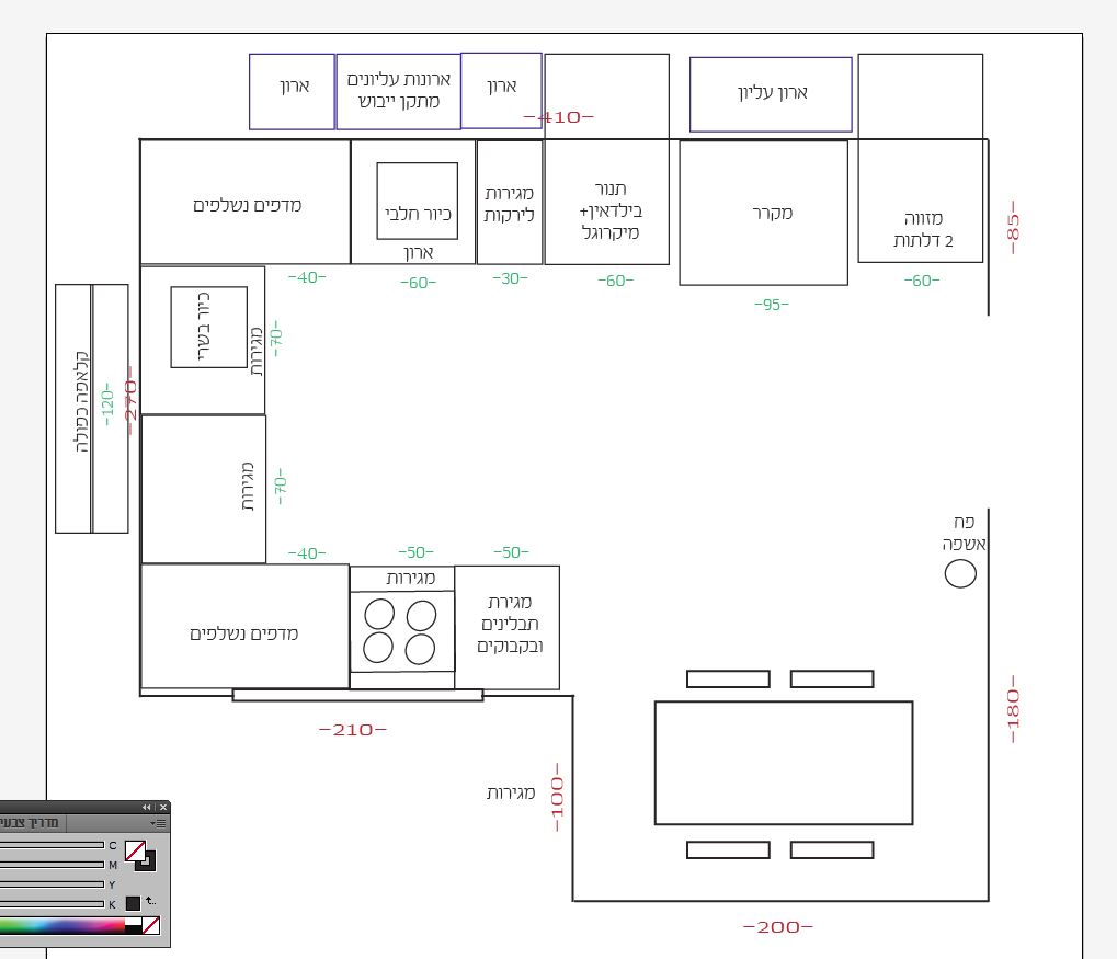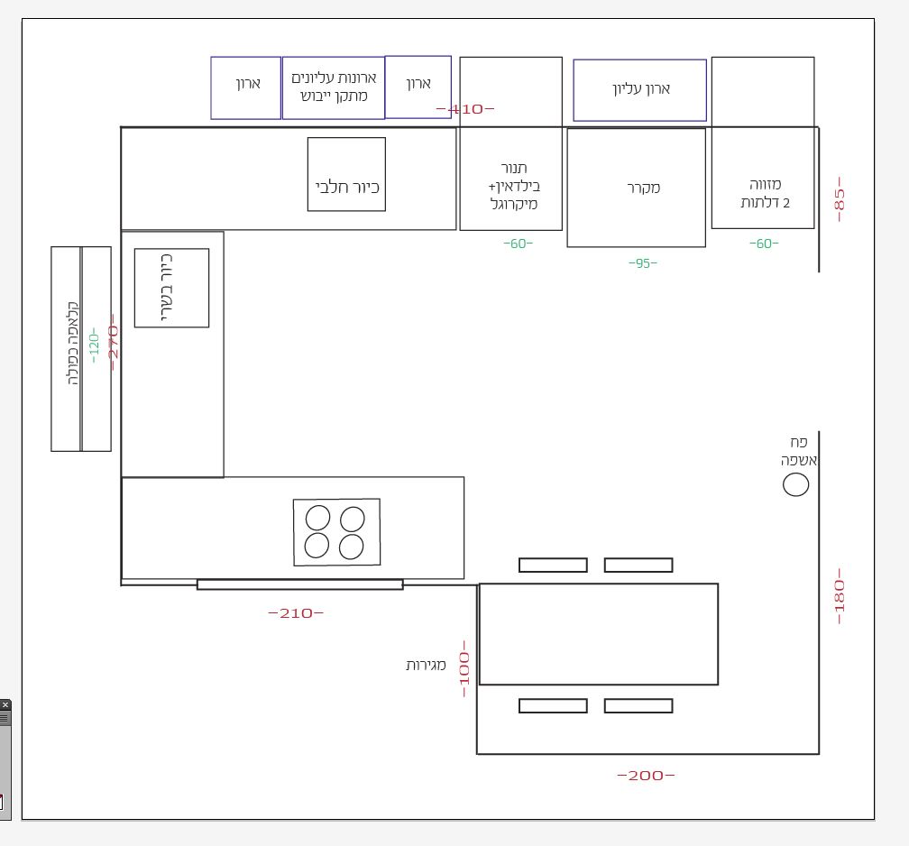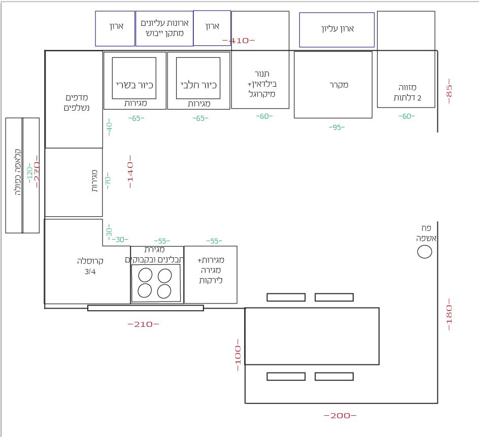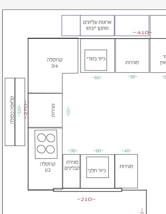 חשבתי לעשות משהו כזה, כמו בשרטוט, אבל הבנתי שא"א למקם מעל הגז ארון. ואז יש הפסד שטח גדול בעליונים.