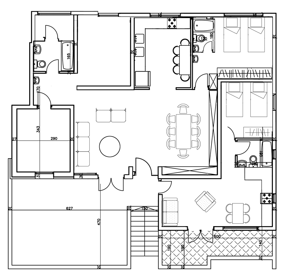 אינני יודע אם מה שאני מעלה בקובץ המצורף מציאותי מבחינת המידות , הקונסטרוקציה התשתית , התקציב , והטעם של בעלי הבית . אבל ניסיתי לבטל את המסדרונות ולקרב את הסלון לגינה. (לשרותי האורחים לא מצאתי מקום)