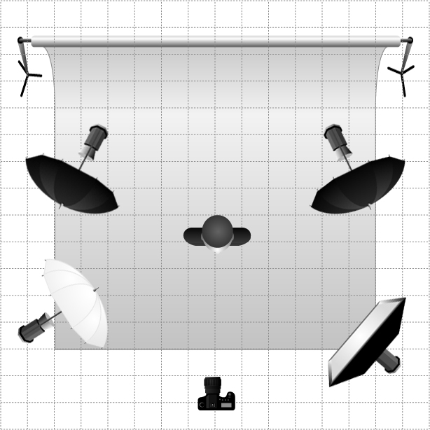 הבעייה בתמונה המקורית שהעלו כאן, היא שאין מצב שתאורה שמכוונת לעבר הצלמים תשרוף את הרקע הלבן. להסביר מה זה "חוק הריבוע"?