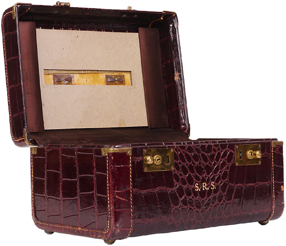 • Red alligator skin suitcase 1.jpg